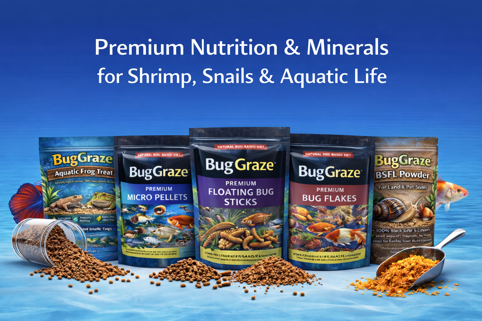 Made with high-quality insect protein and essential minerals, BugGraze supports healthy growth, strong shells, and clean water for shrimp, snails, frogs, and aquatic life.